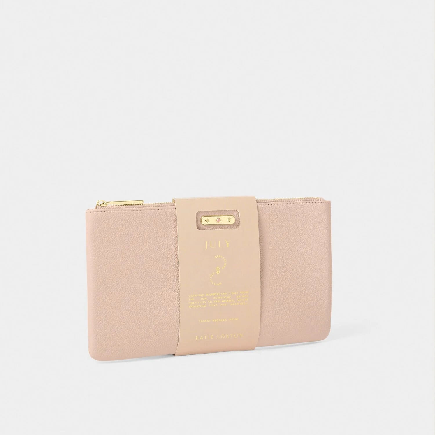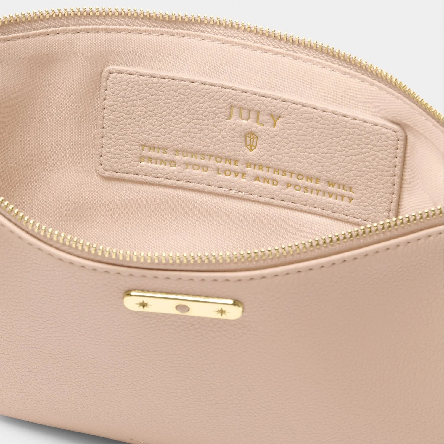 Our 'July' Birthstone Pouch features custom gold-tone hardware, beautifully set with the month’s real semi-precious stone, Sunstone. Inside the zip closure, you’ll discover a hidden message and individual traits that perfectly represent the birthday girl. For the ideal gift, pair this pouch with the matching Birthstone Bracelet and Keyring.