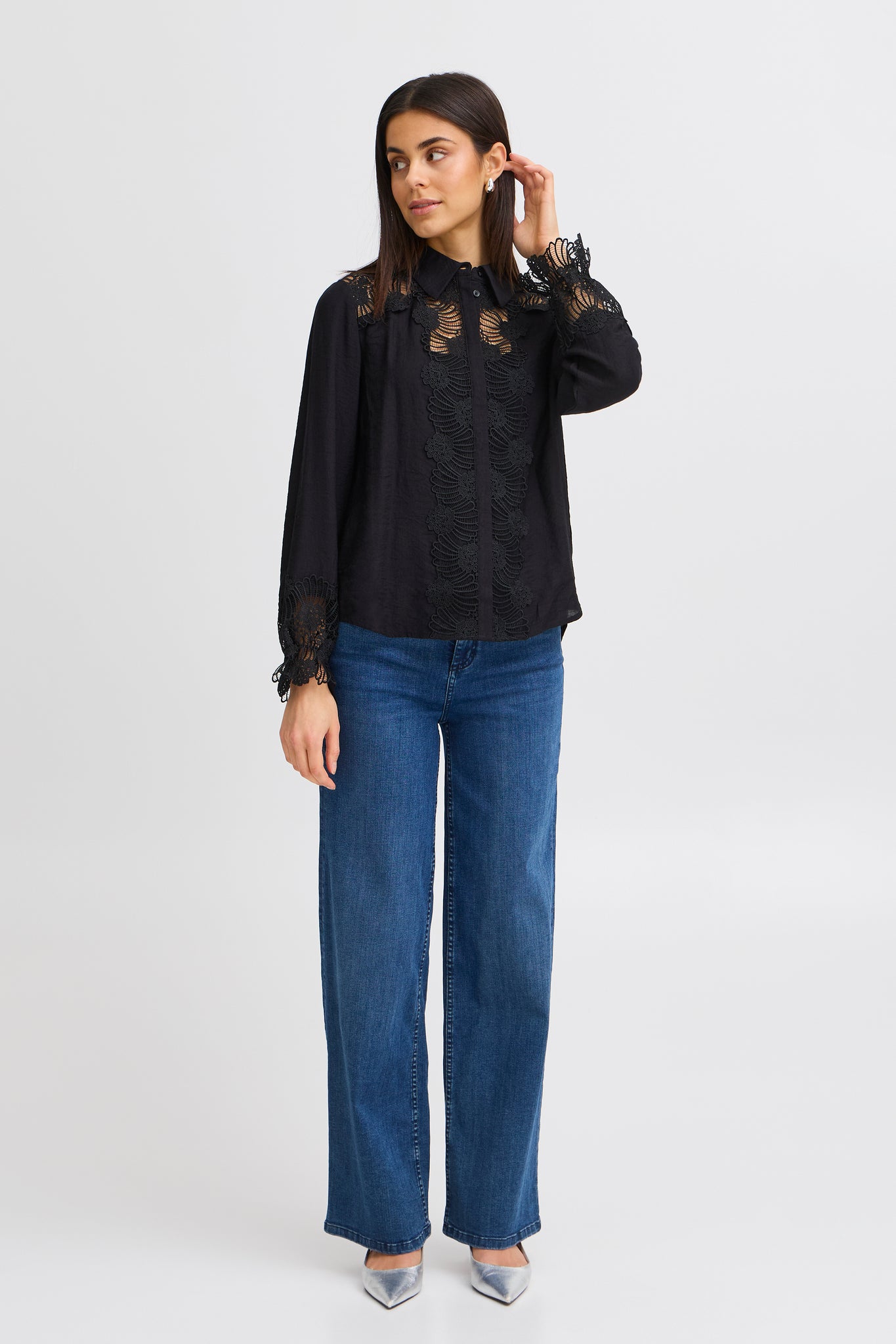 Fransa 20615029 frdentelle black blouse long sleeve top