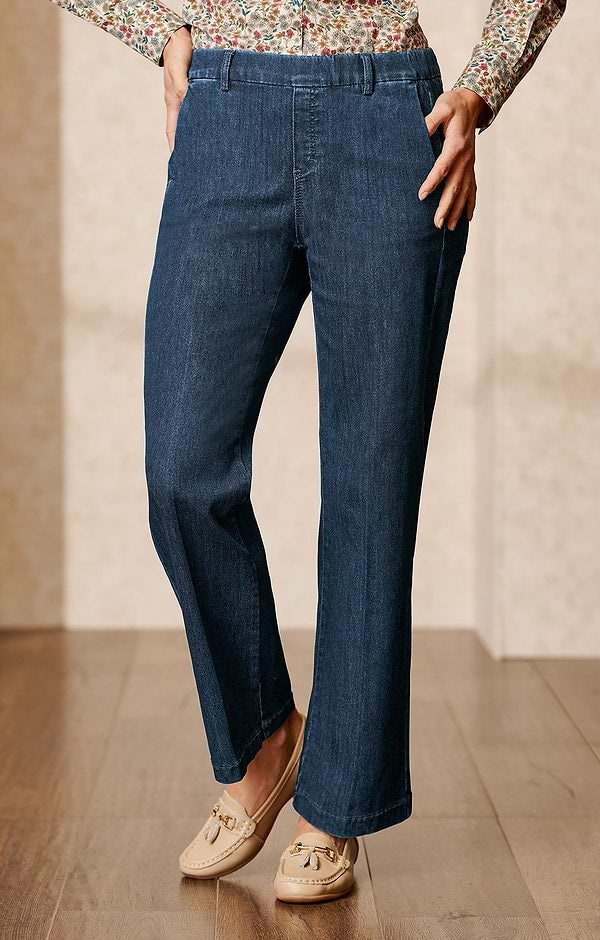 Anna Montana Mila 1045 48 Stone Wash Blue Wide Leg Flexi Pull-On Jeans are a relaxed-fit style crafted in soft stretch denim with a flexible waistband—ideal for everyday comfort and casual polish.