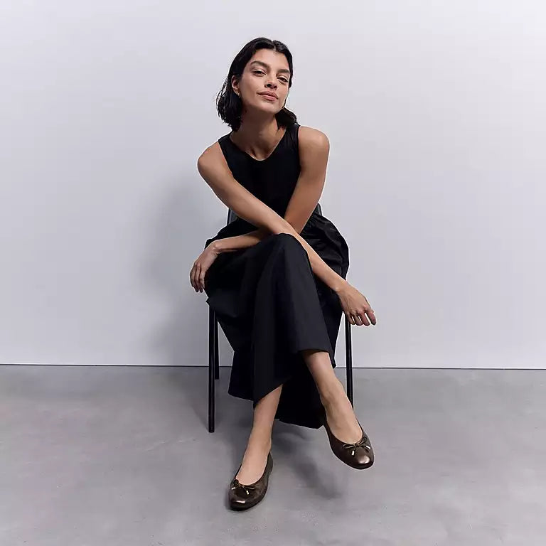 Crafted in luxe butter-soft metallic nappa leather, including a little bow. Carefully designed for an enhanced fit. And unbelievably comfortable, thanks to supportive moulded footbeds and our Dynamicush™ cushioning hidden in those 'flat' soles. Light, slim, refined, with jeans or tailoring. That rare thing, a chic ballerina your feet will love.