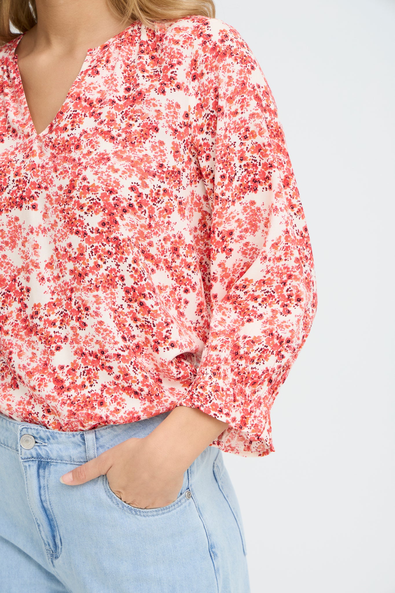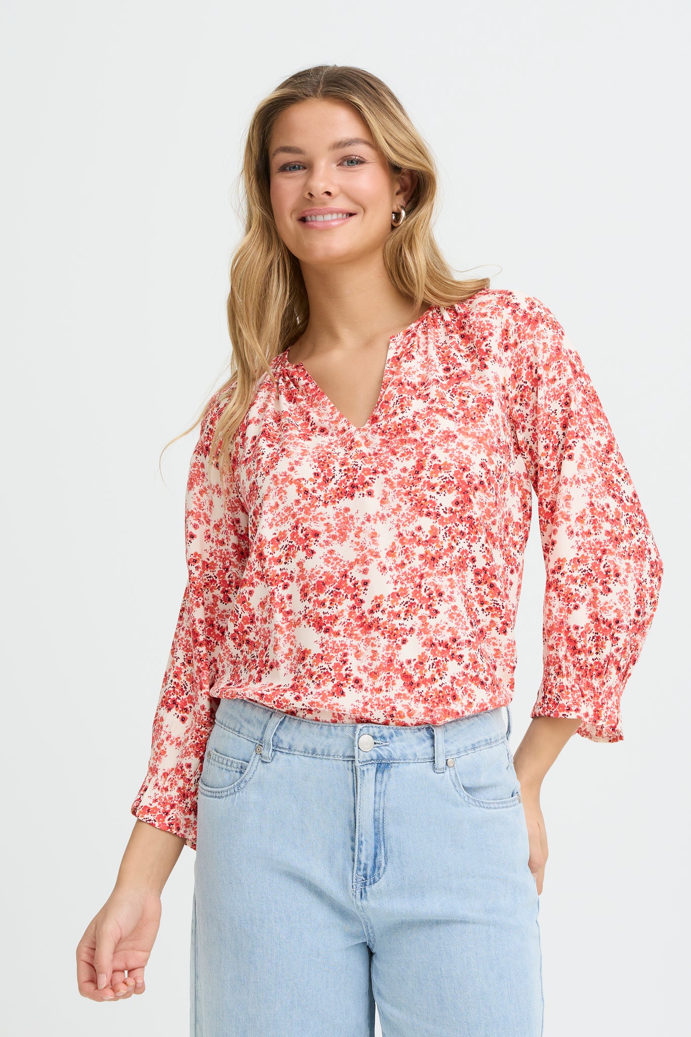 The FRMERLE blouse by Fransa is a modern and effortless wardrobe essential. Crafted in a soft, lightweight fabric, it offers a relaxed fit with a beautifully fluid drape. Featuring a clean, collar‑free neckline and subtle detailing at the shoulders, this blouse delivers a minimalist yet refined silhouette.