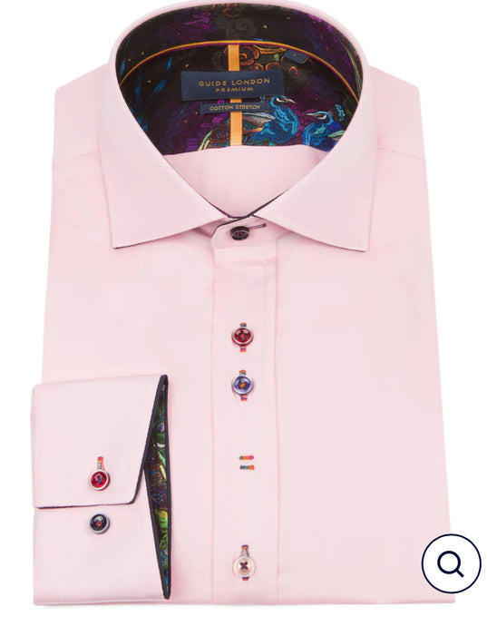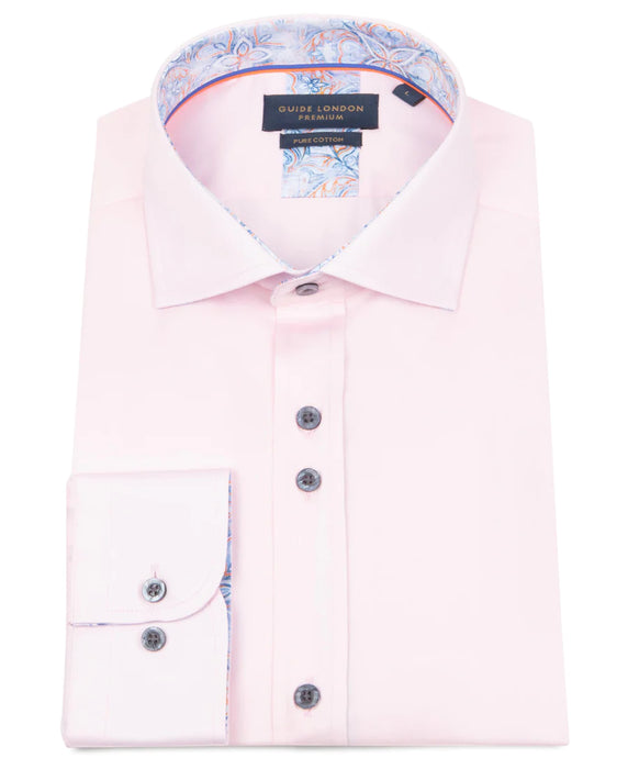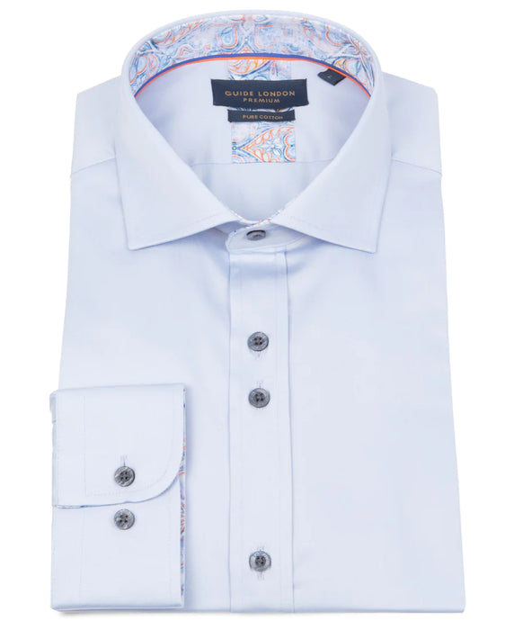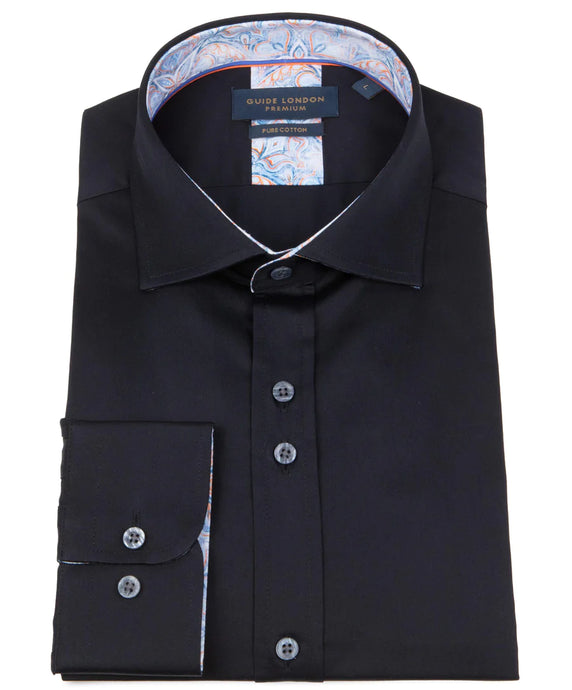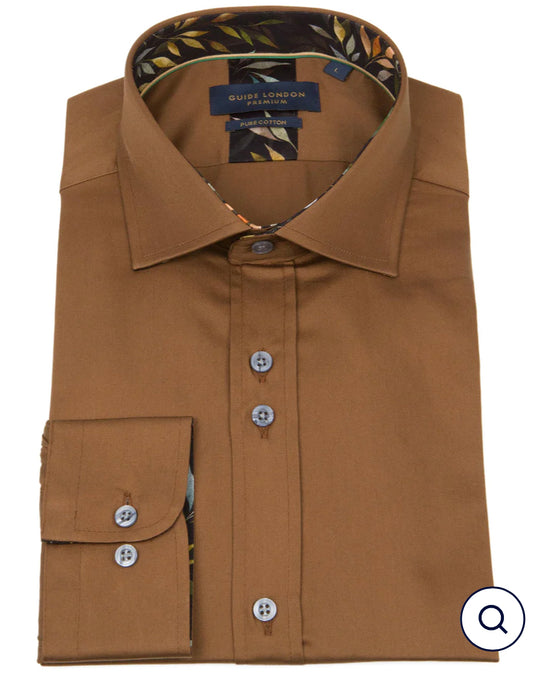 LONG SLEEVE SOLID COLOUR SATEEN PRINT CONTRAST SHIRT