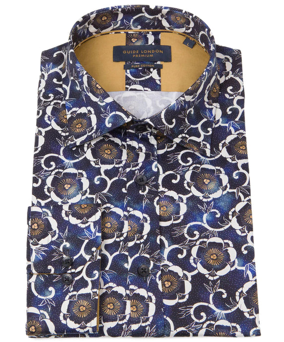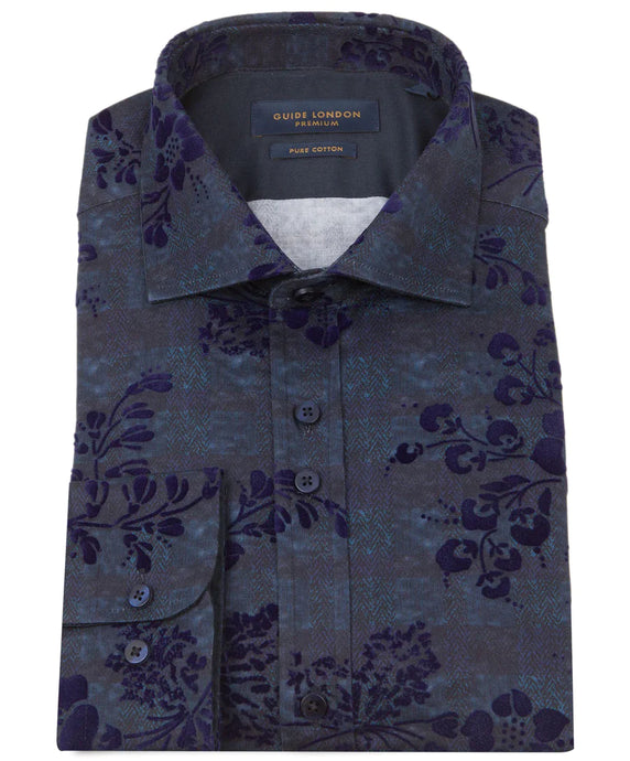 LONG SLEEVE FLORAL FLOCK PRINT SHIRT