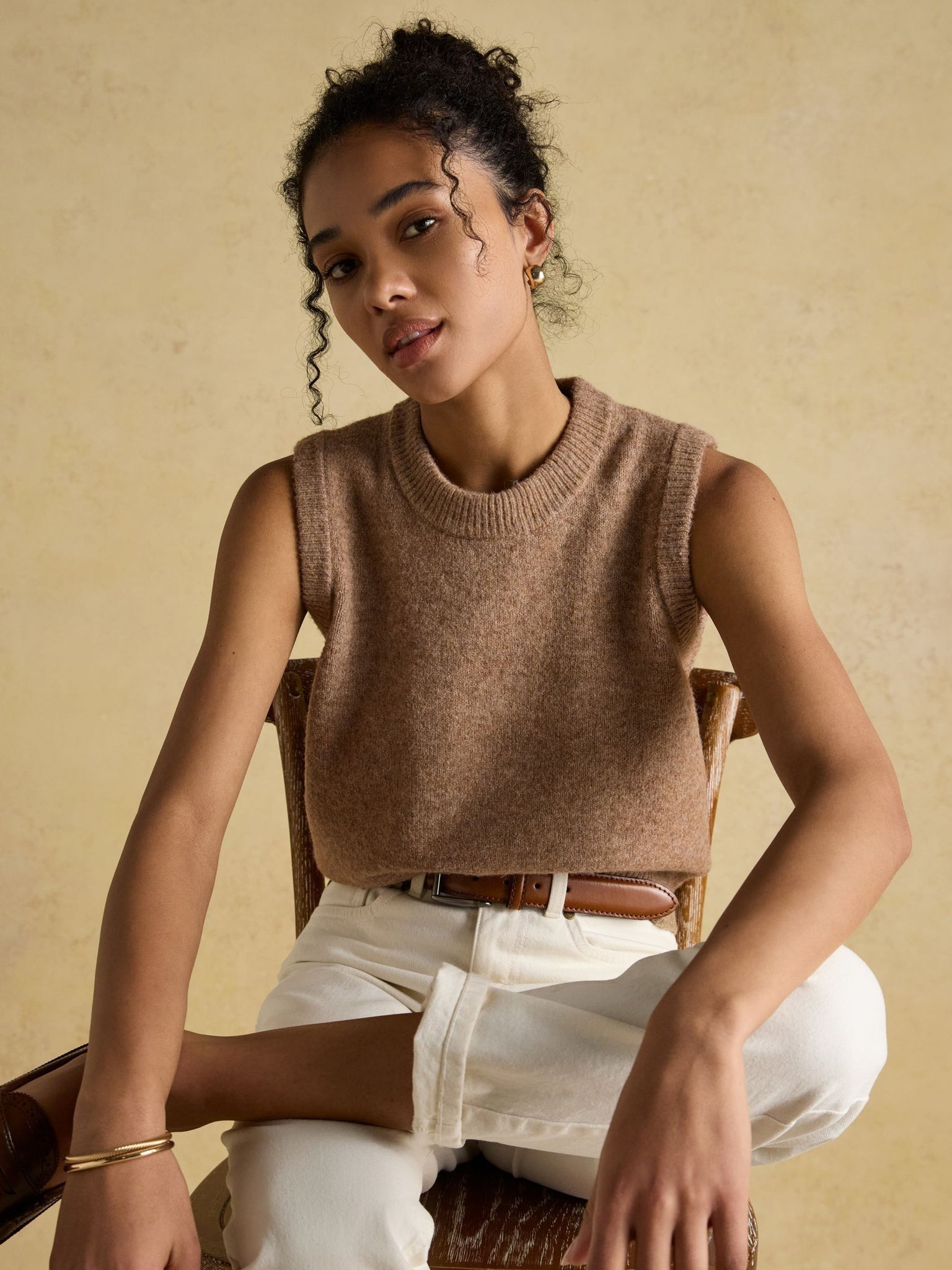 A knit you can wear now and later, the Holly vest is a versatile style to own. In milder weather style alone with chino or denim shorts and when temperatures drop, layer over a ruffle neck blouse or slim-fit top. It comes in an array of colours to choose from and is finished with a ribbed neck, hem and armholes. Knitted Sleeveless Regular fit Ribbed neck Ribbed hem Ribbed armholes
