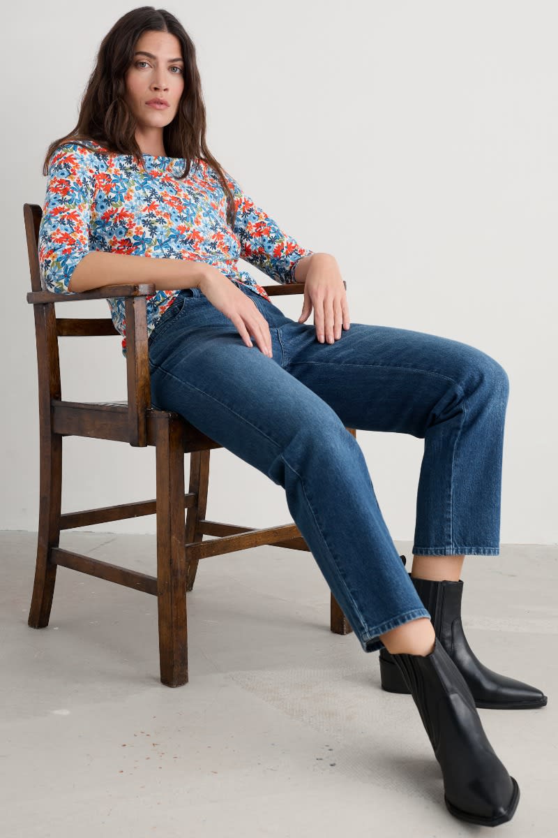 A 3/4 length sleeve version of our Easel Top - a wardrobe staple that will see you through the seasons. Made from soft organic cotton jersey with a hint of stretch, it's perfect for layering with a neat fit, boat neck and long sleeves.