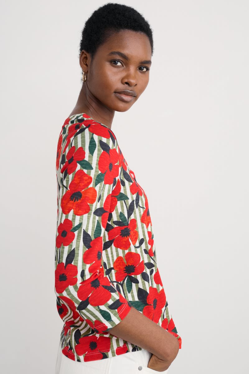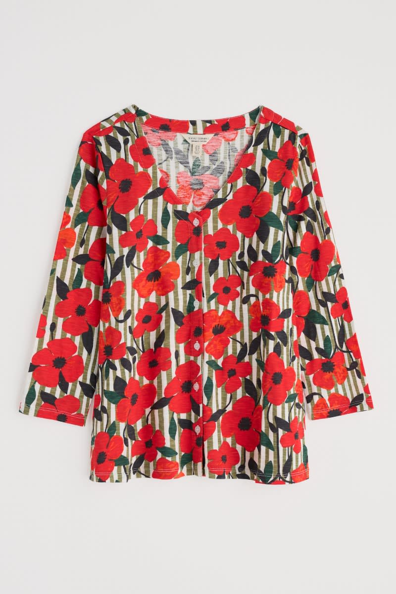 A simple yet timeless favourite for a versatile wardrobe update. The Studio Glass Top can be worn buttoned up for an elevated t-shirt look or worn open as a casual overshirt. Made from organic cotton jersey, it has a relaxed fit, soft v-neckline and three-quarter length sleeves. We love it paired with jeans or a skirt.