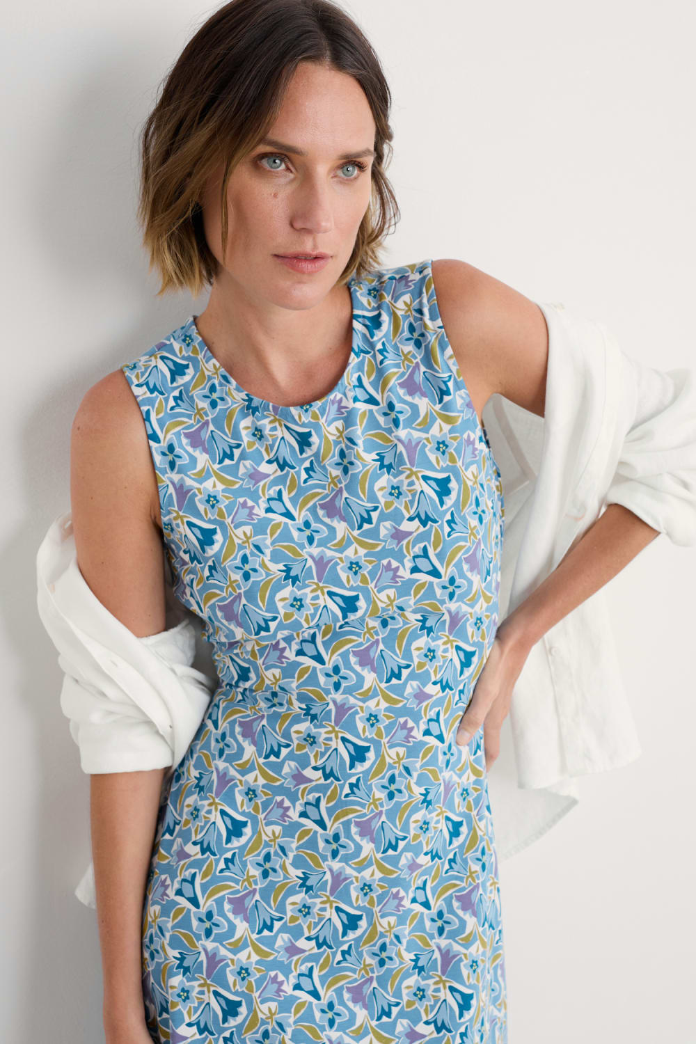 A timeless dress for summer made from a soft jersey blend. The slim-fitting sleeveless dress flares out towards the midi-length hem, and we've added a touch of stretch for comfort and fit. A soft scoop neckline completes the lovely simplicity of this versatile piece.