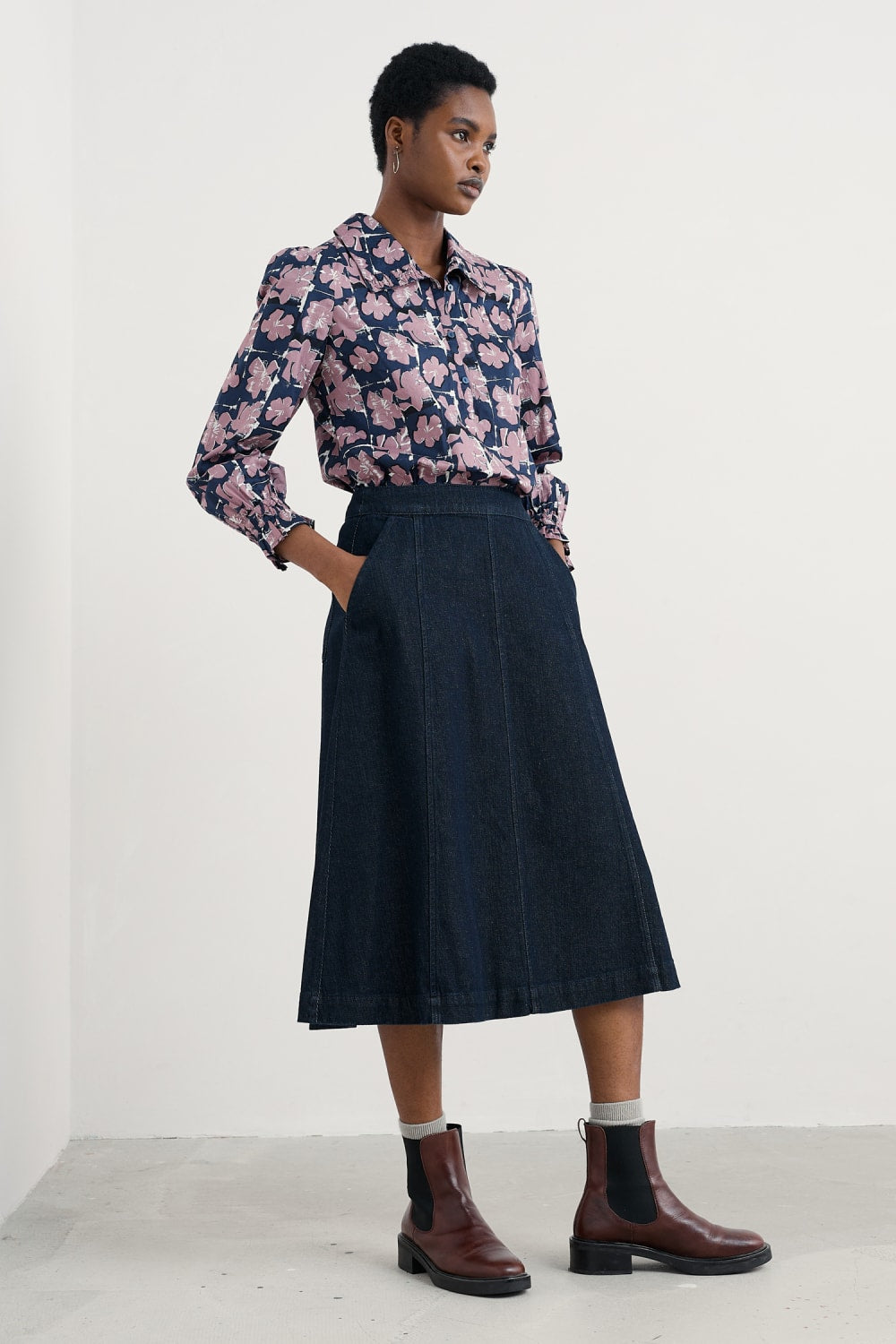 B-Wm37892-36378 Ysella Top Monoprint Floral Maritime