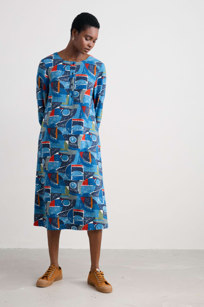 B-Wm38067-35934 Sea Call Dress Penwith Abstract Squall