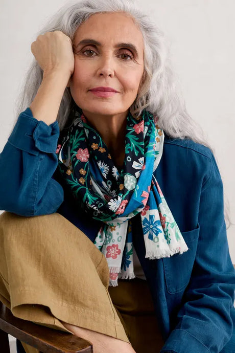 Seasalt B-Ac29816-32482 New Everyday Scarf Creekside Floral Border Chalk
