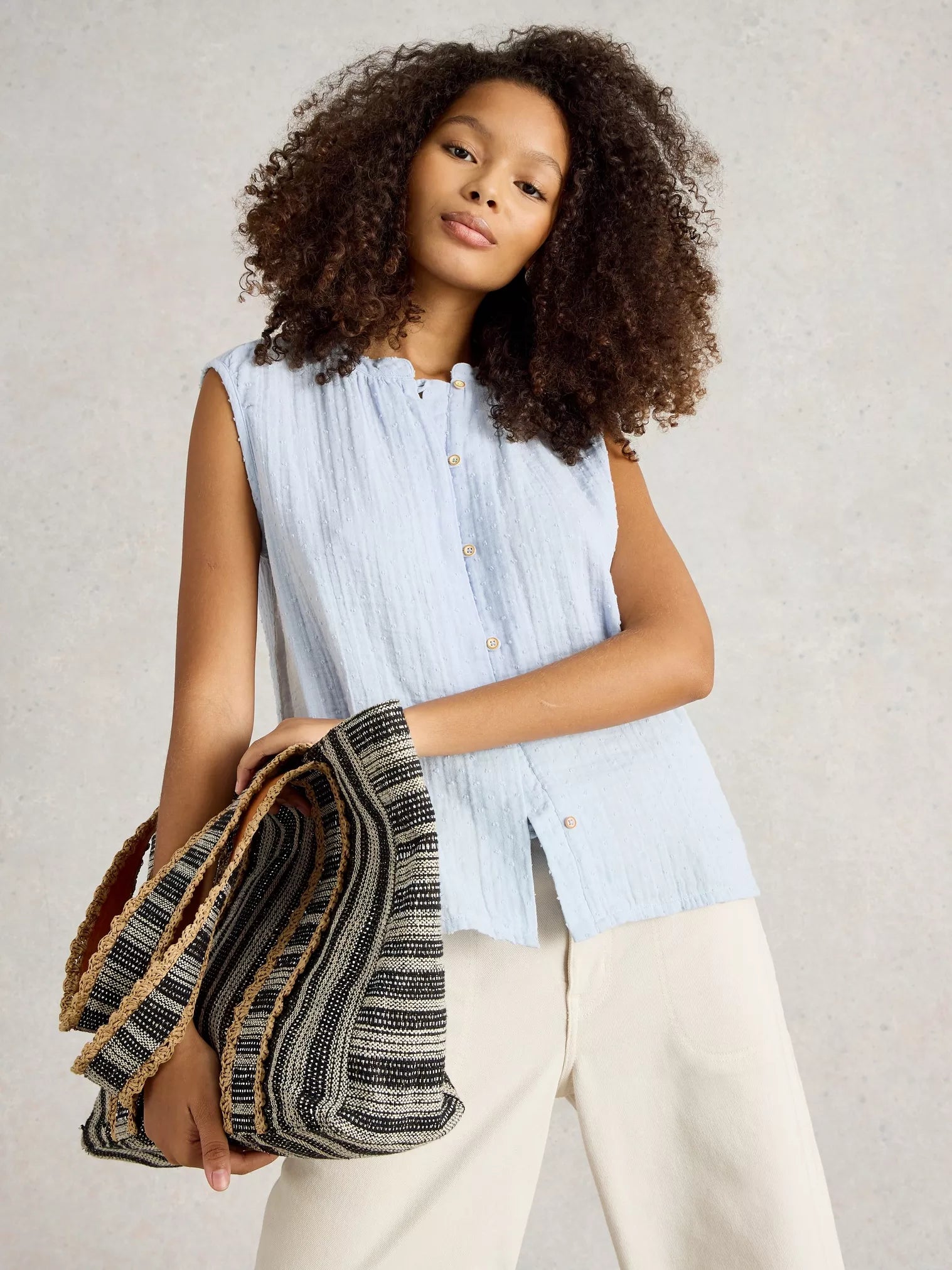 443468 YASMIN DOUBLE CLOTH VEST LGT BLUE